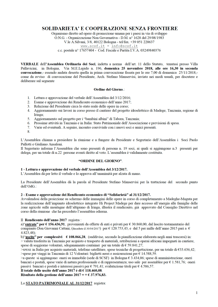 Pingback: Verbale assemblea ordinaria di SCSF del 25/11/2018 – Solidarietà e Cooperazione Senza Frontiere o.n.g.