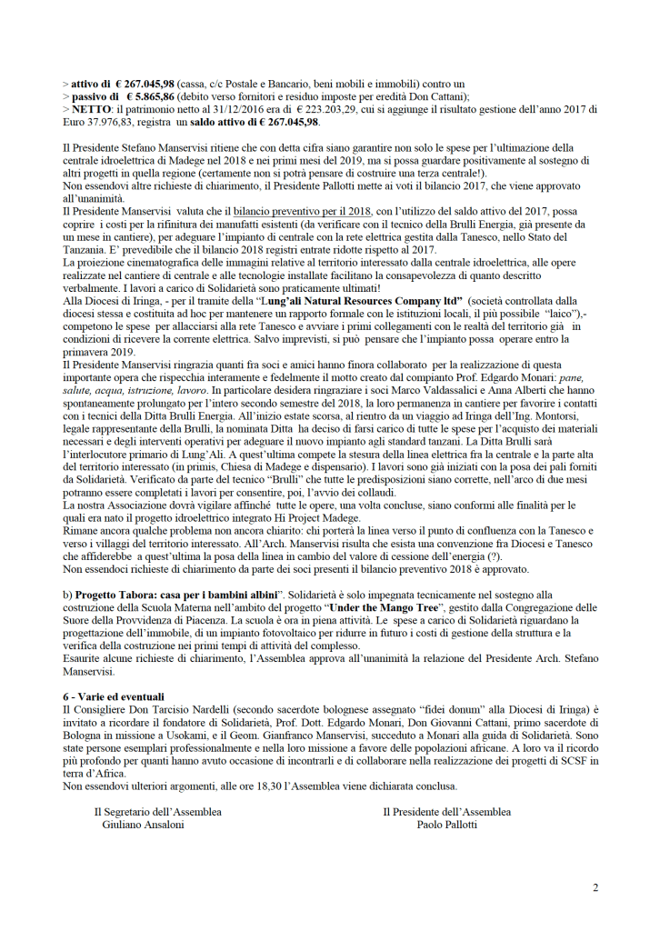 Di seguito pubblichiamo il verbale, la presentazione del presidente e i rendiconti approvati dall’assemblea.