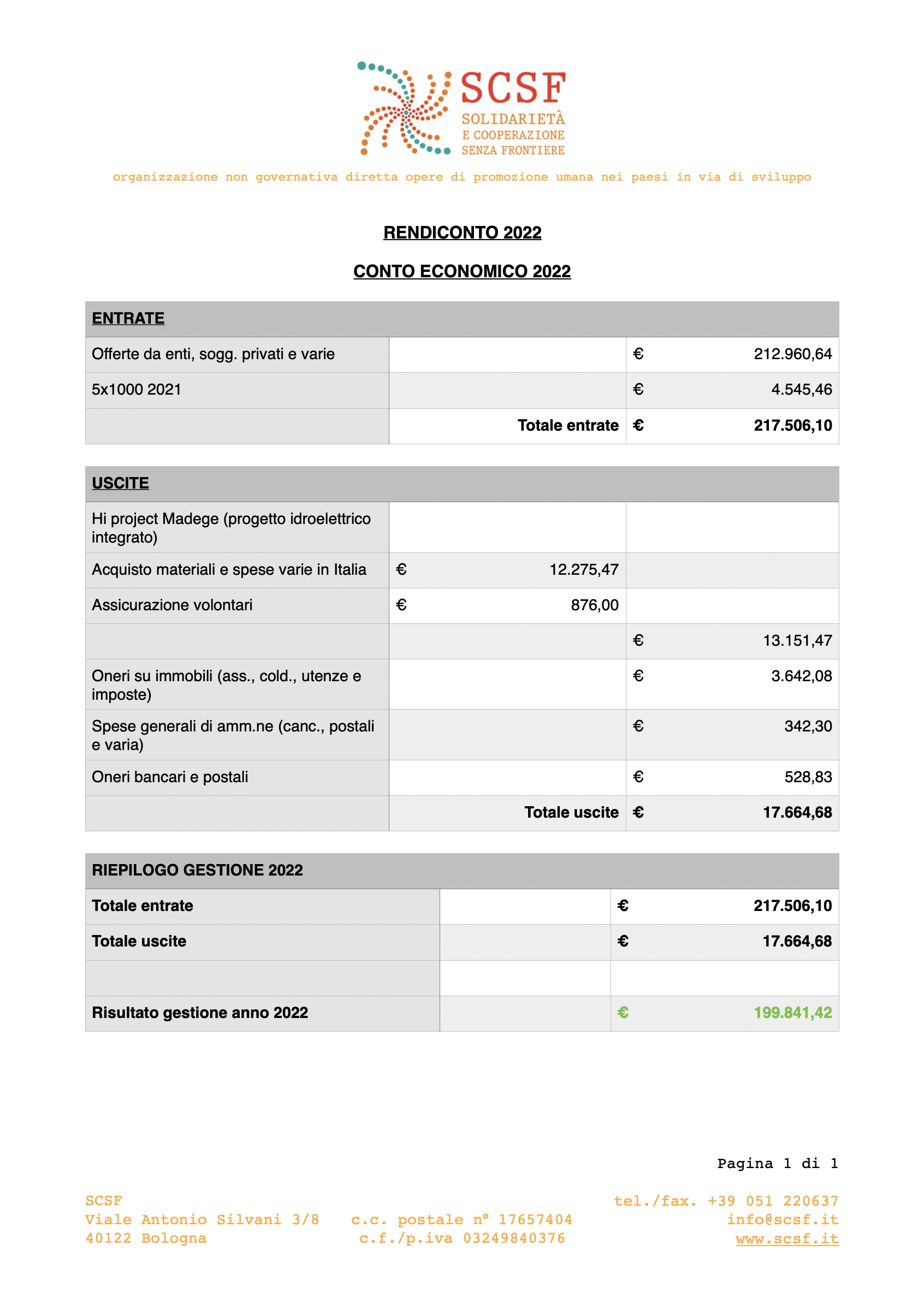 Rendiconto esercizio 2022
