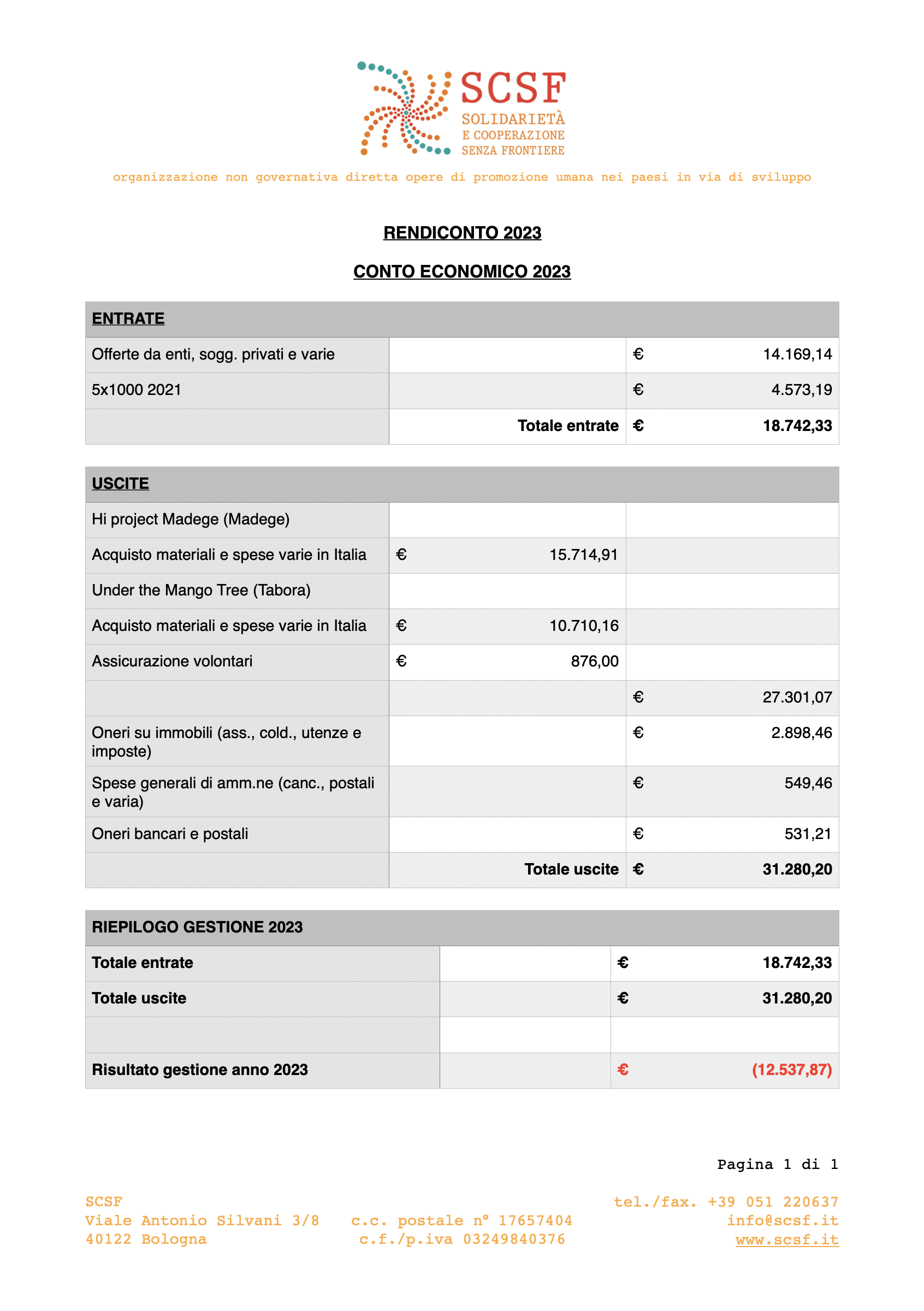 Rendiconto esercizio 2023