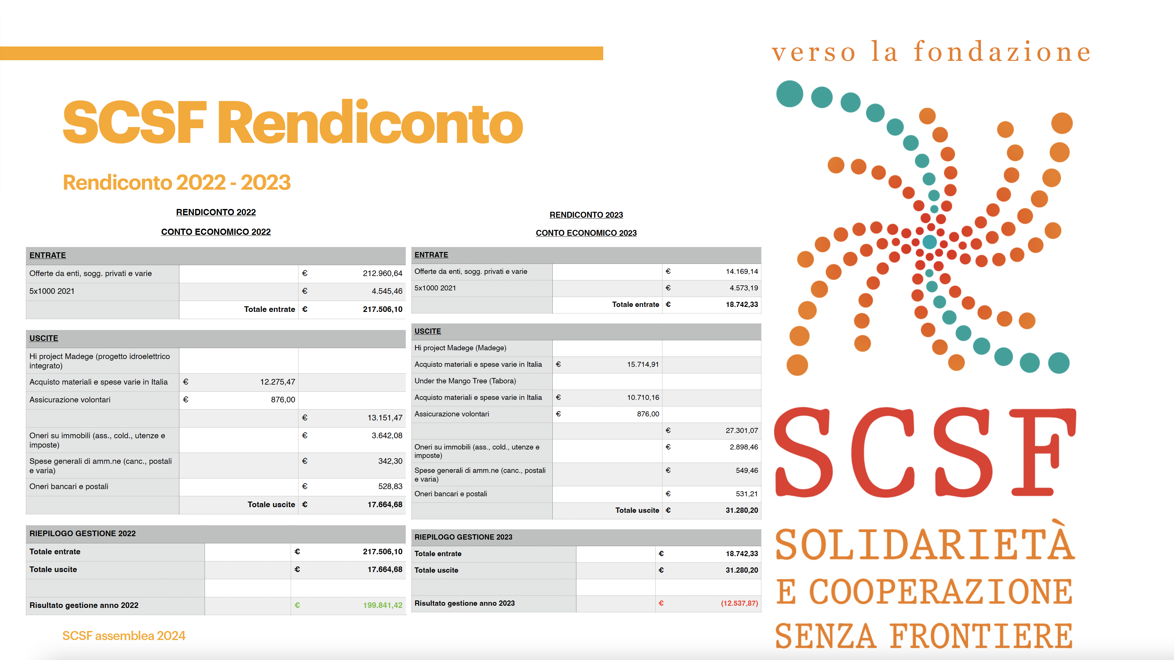 Di seguito pubblichiamo gli atti dell’incontro relativo agli esercizi 2022 e 2023: