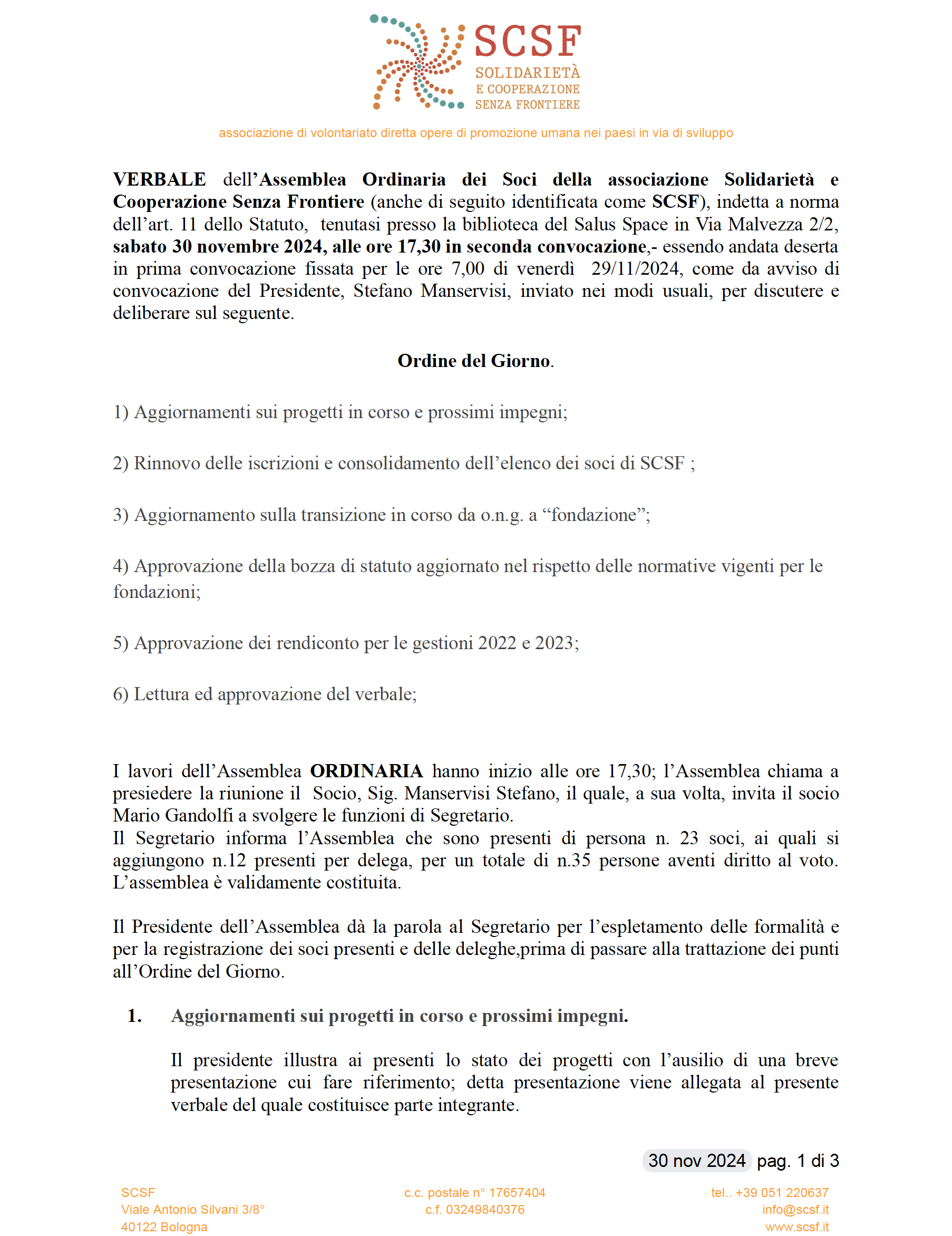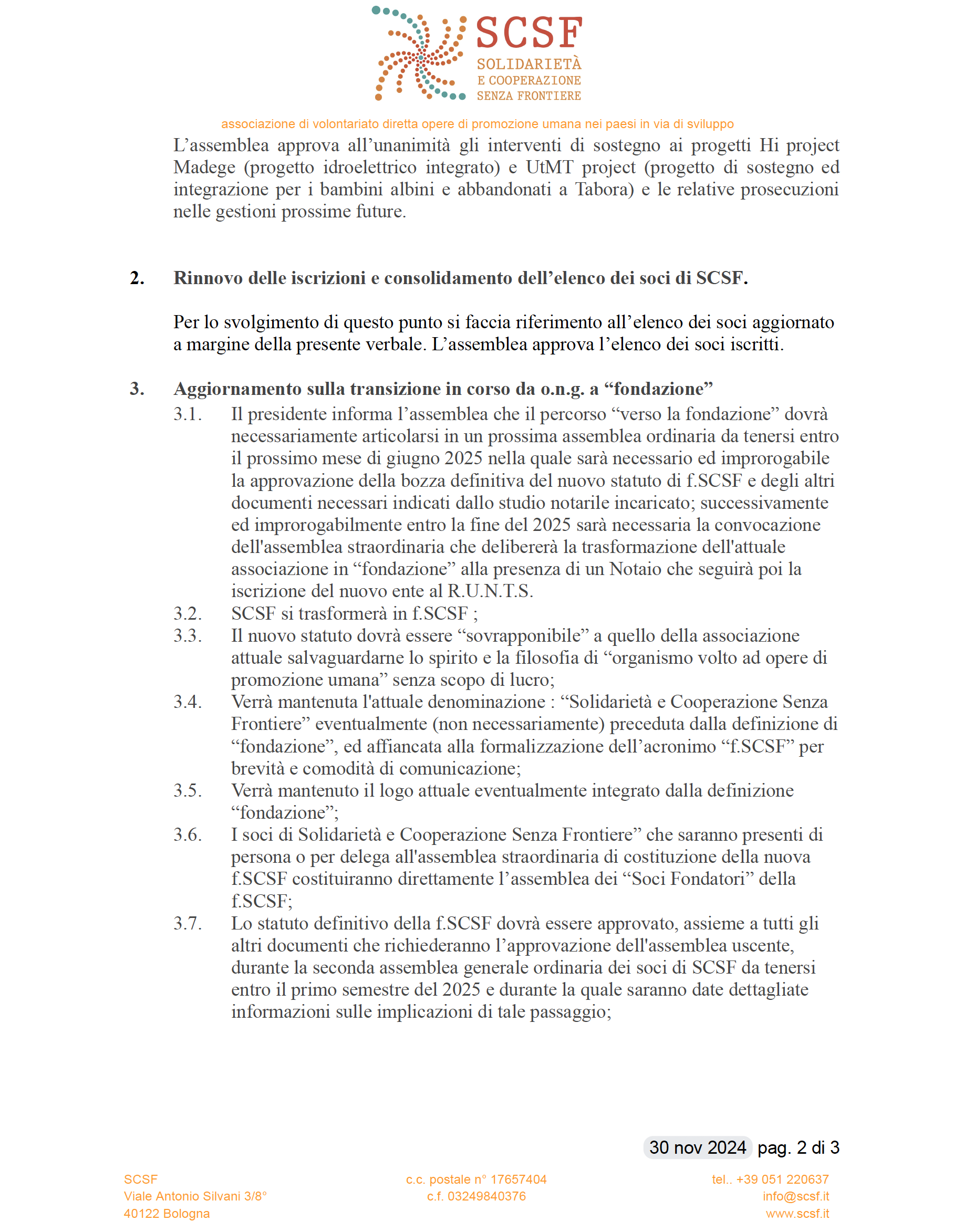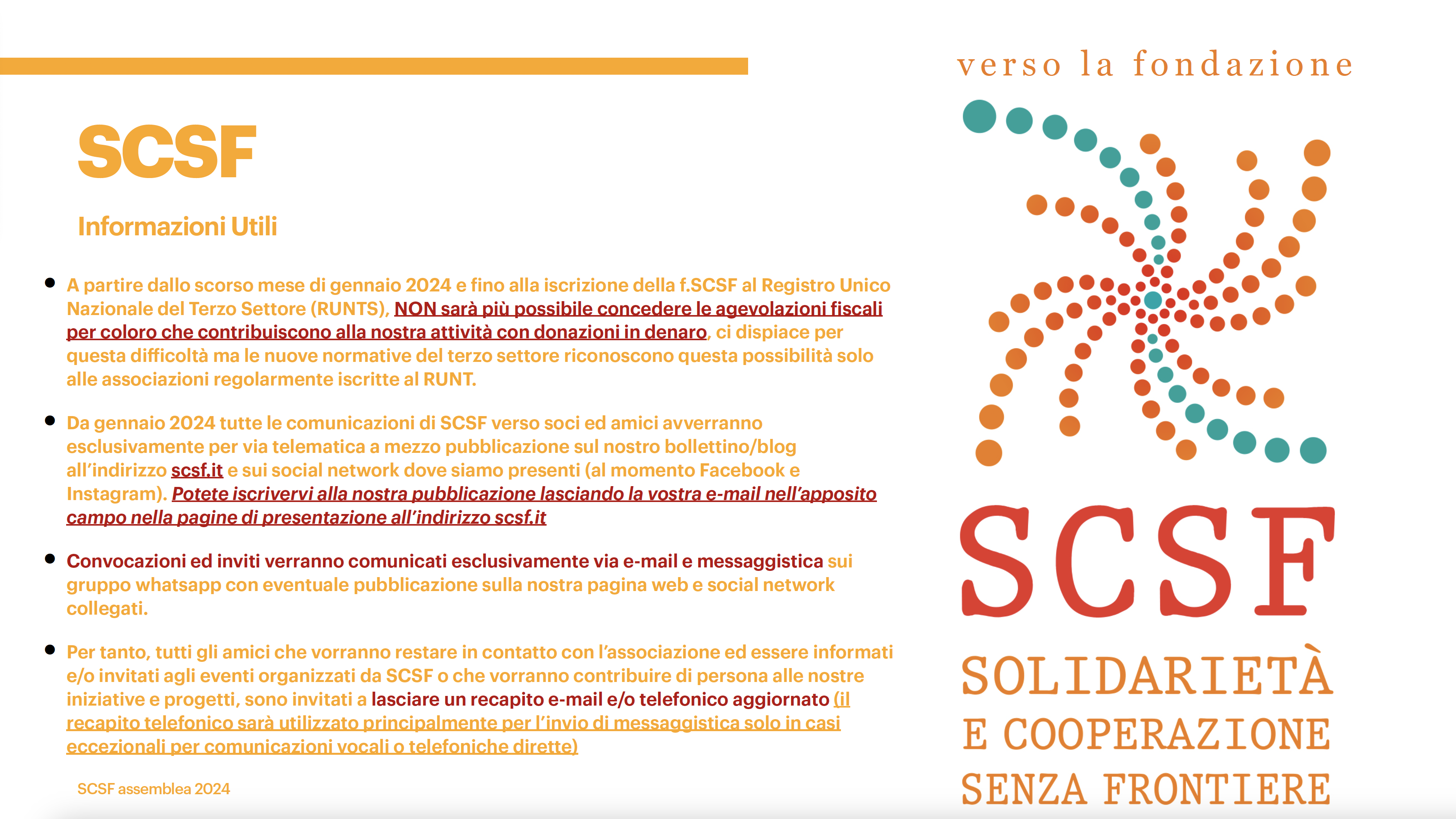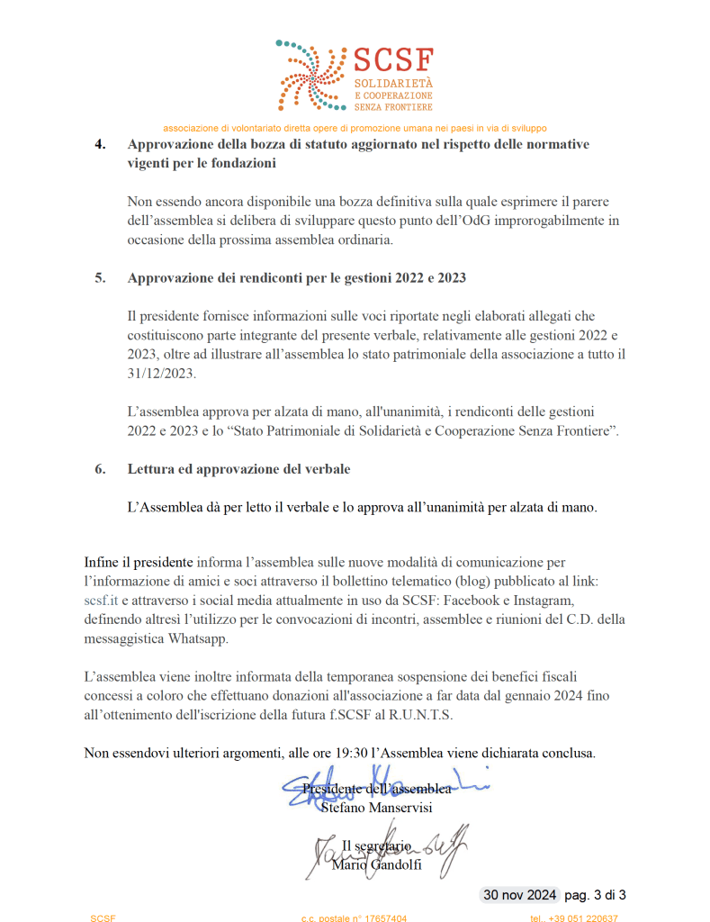 SCSF Assemblea ordinaria del 30/11/2024 “verso la fondazione” 1^ tappa.