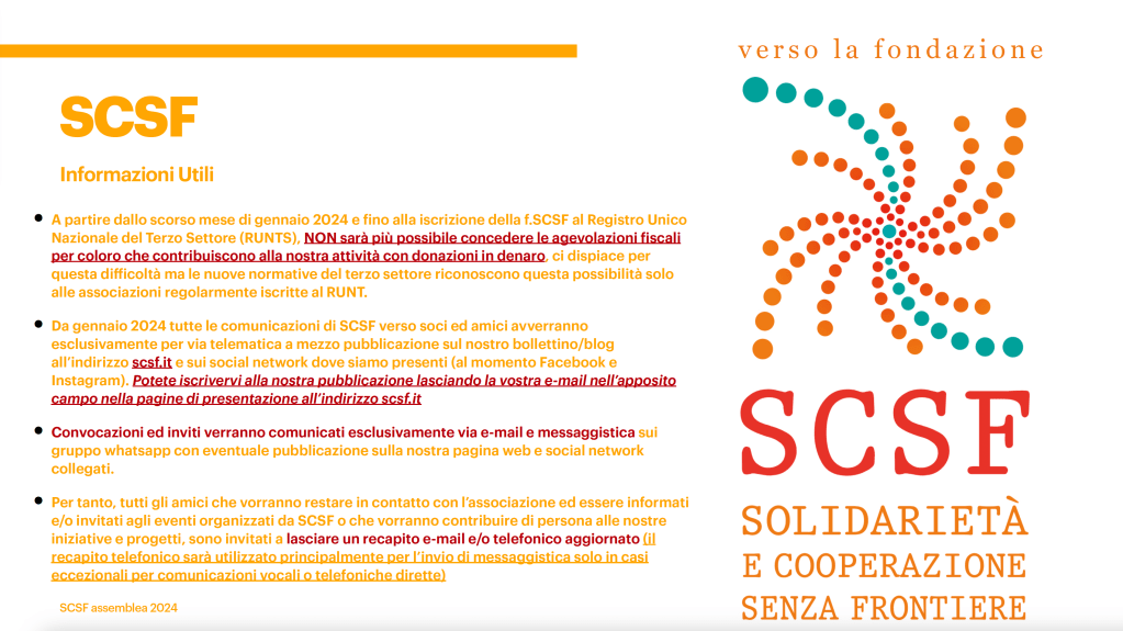 Pingback: Assemblea ordinaria di SCSF 2024 – Solidarietà e Cooperazione Senza Frontiere